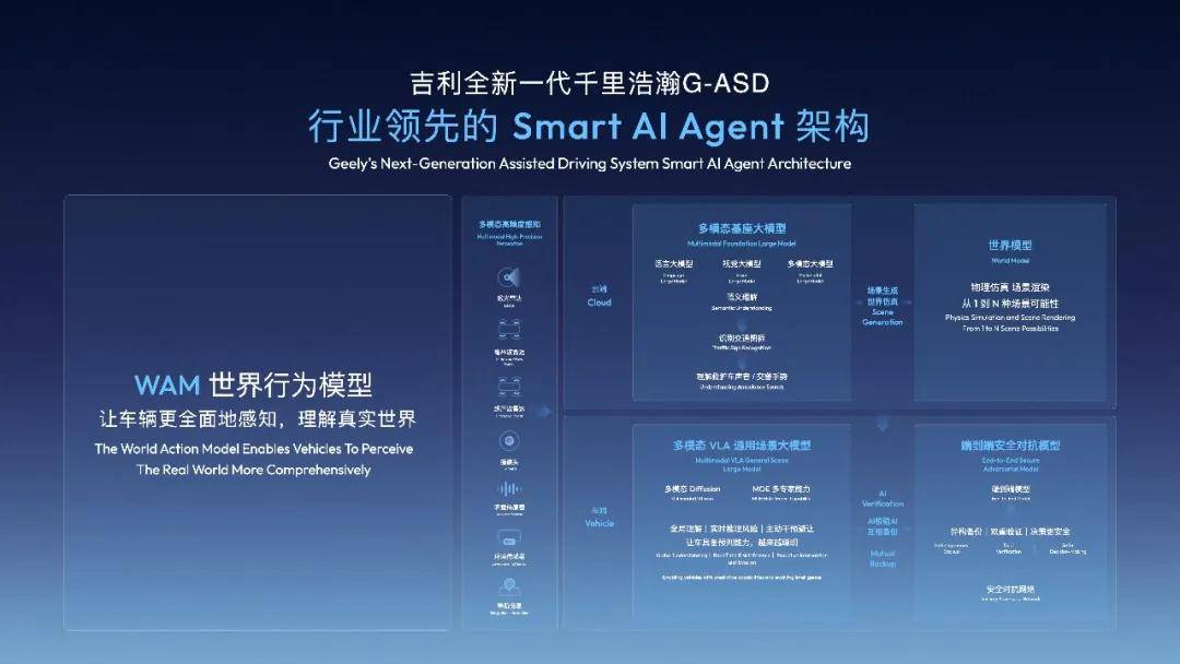 在WAM模型的赋能下,吉利汽车新一代千里浩瀚辅助驾驶系统——千里浩瀚G-ASD也正式发布,可为吉利体系下的用户提供同等级下最优质的体验。2026年,在法规允许的前提下,吉利将逐步推送高速L3、城区L4功能,并启动Robotaxi试运营。