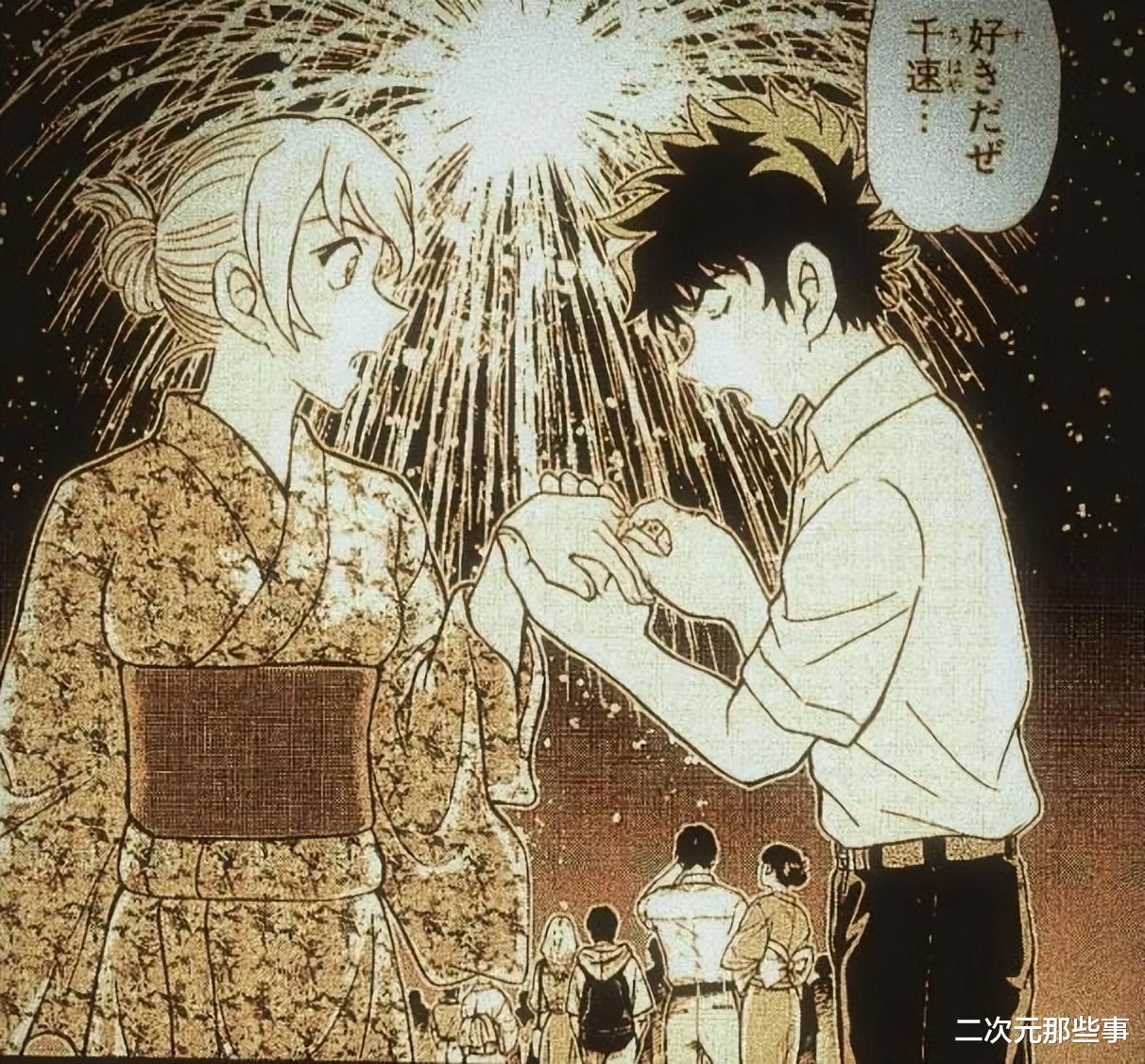 至于第二段三角恋则是和萩原千速以及横沟重悟,萩原千速是松田阵平好兄弟萩原研二的姐姐,他们从小就认识,也算是青梅竹马,松田阵平从小就喜欢萩原千速。漫画最新的1156话中,萩原千速还回忆起了松田阵平向她表白的事情,松田阵平拿着戒指向她表白,虽然很浪漫,但萩原千速并没有同意。