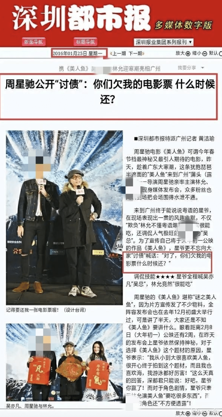 这就给人一种印象,周星驰只认钱,不认人,也不爱电影,电影只是他赚钱的工具,可他对外的形象又是遗世独立的艺术家,人设跟本人不符,口碑再次下跌。