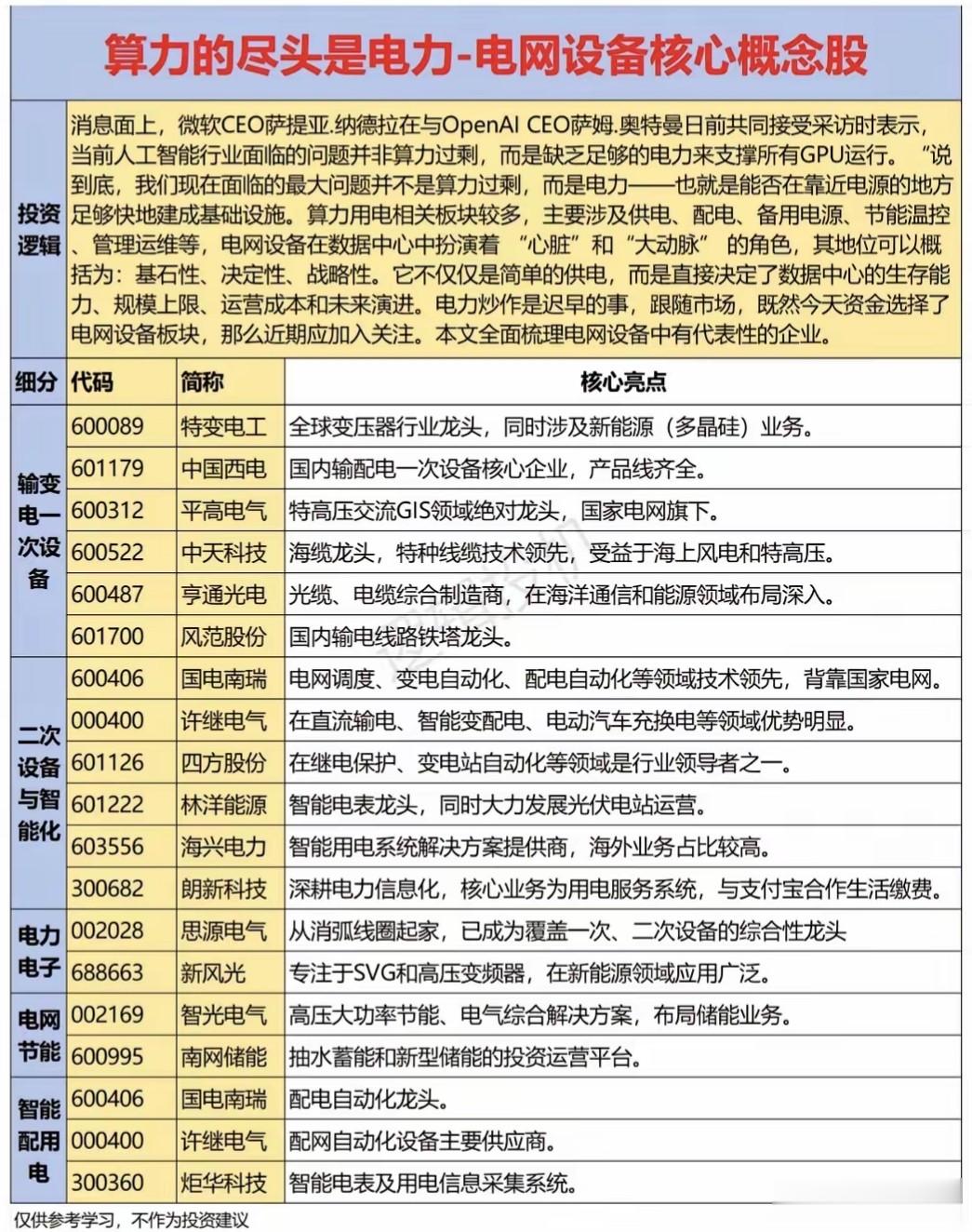 阳哥整理了一下电力设备的相关个股,如下图,感兴趣的可去研究研究。
