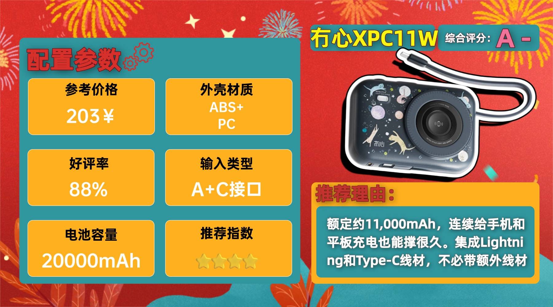学生推荐充电宝第六名:冇-心XPC11W