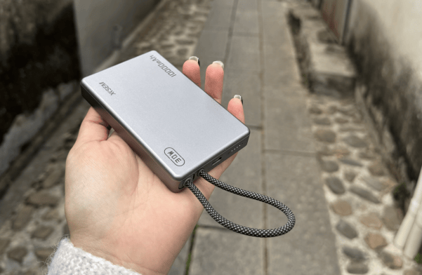 自带 Type-C 和 Lightning 双线,10000mAh的容量一天课程使用完全够用,连带耳机、手环也能顺便充下。机身 179g,放在书包侧袋或者外套口袋里都不显重,手感扎实而耐摔,边走边用也轻松自如。我最喜欢的是出门旅行时,把它和手机放在一起,就不用再带一堆线或者备用电池了,轻松又安心。用久了感觉它更像一个贴身小助手,而不仅仅是充电工具。