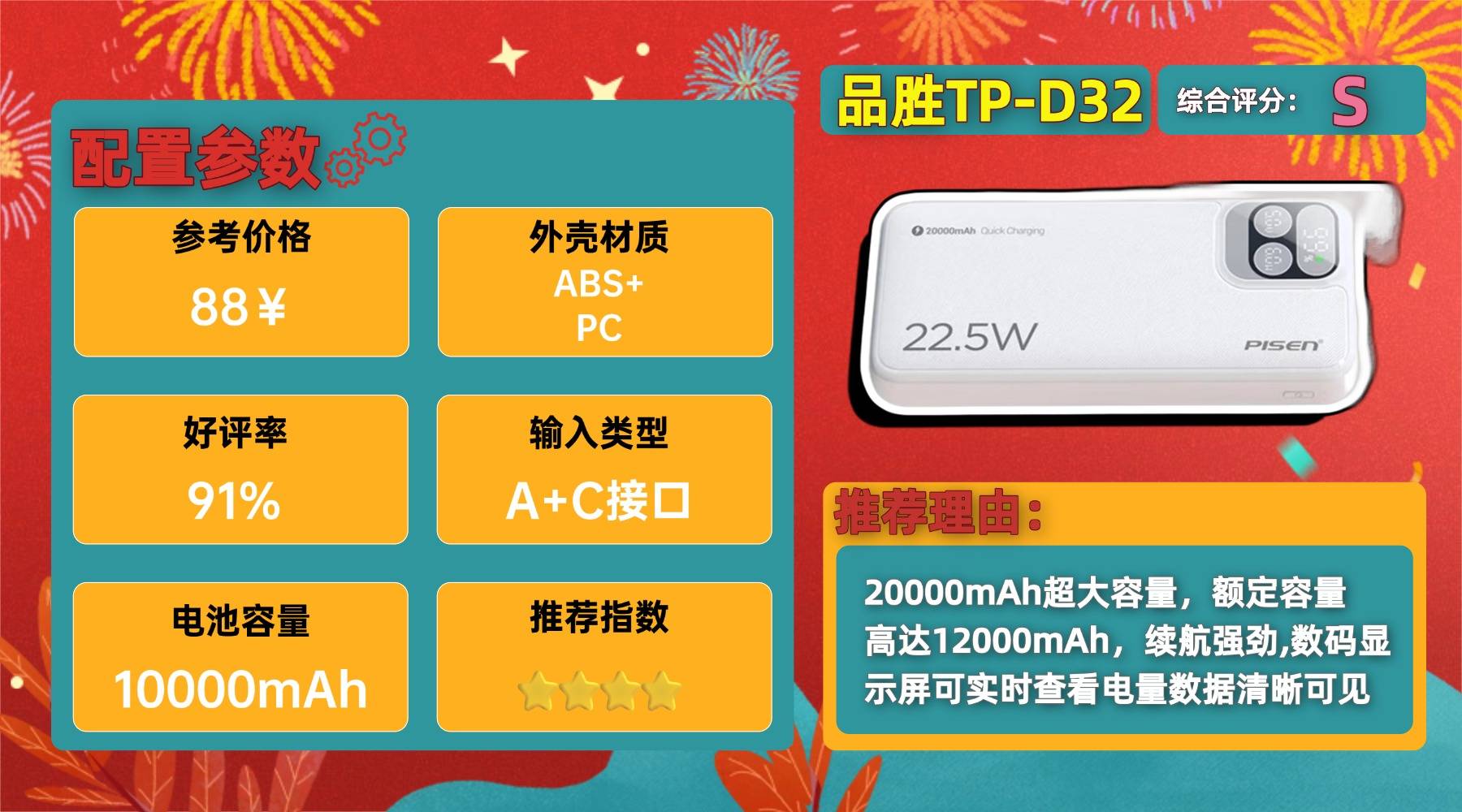 学生推荐充电宝第四名:品-胜TP-D32