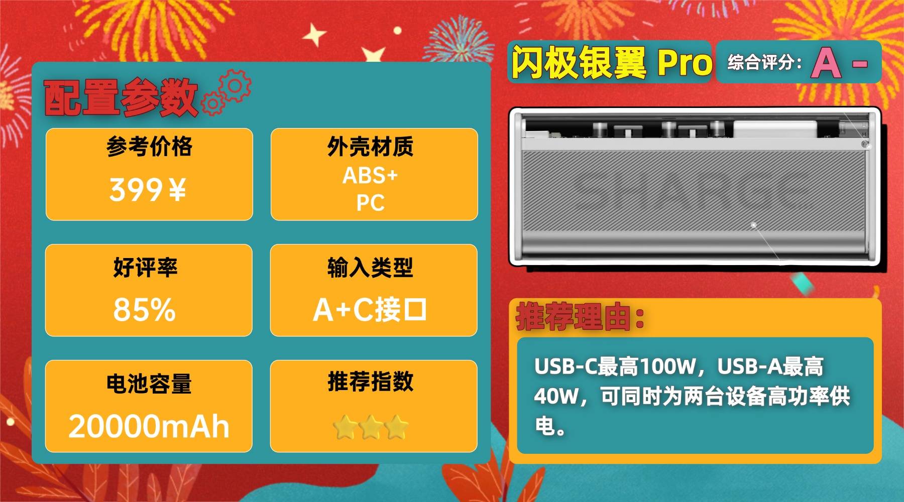 学生推荐充电宝第七名:闪-极银翼 Pro
