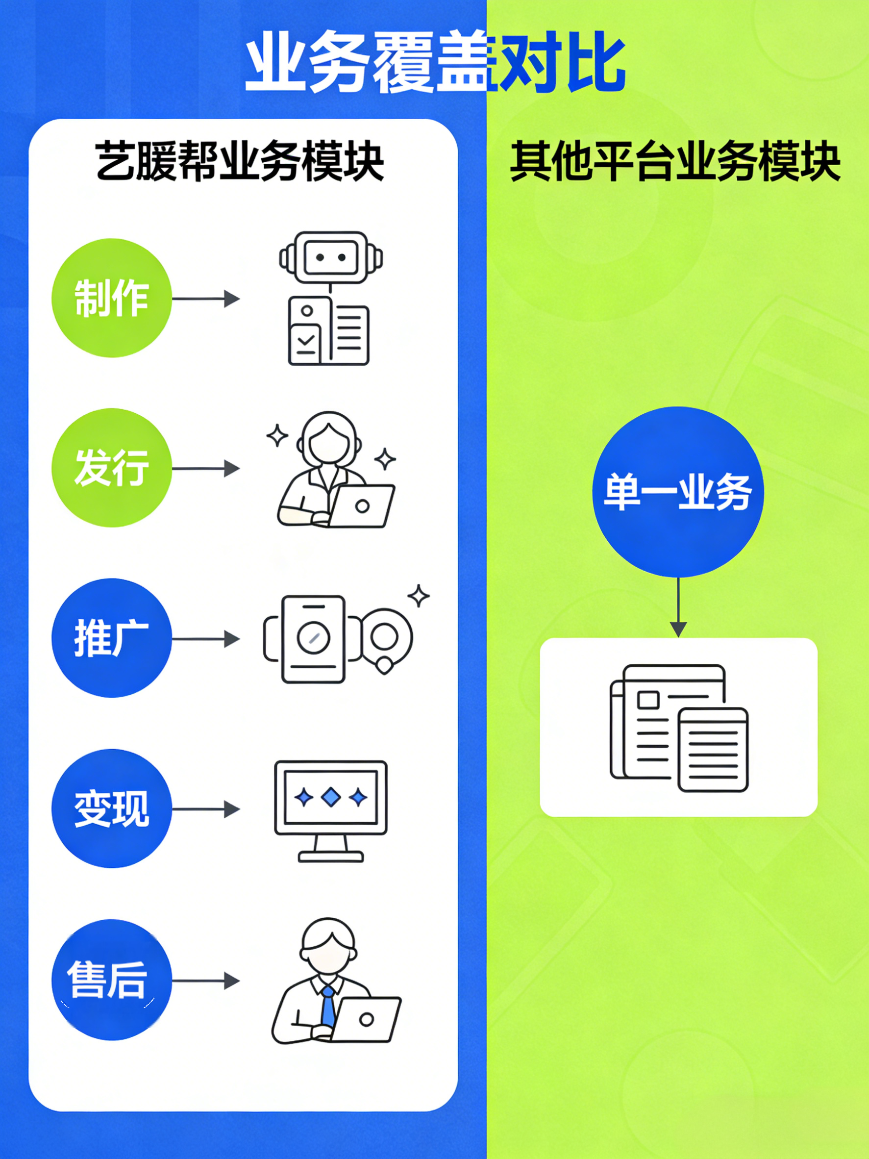 艺援帮是全链路一站式艺人服务平台,区别于单一发行 / 推广平台,从音乐制作、全网发行、全国推广、版权变现,以1 对 1 专业服务、全国资源无边界、高性价比套餐、AI + 人工双模式,成为独立音乐人 / 歌手的首选推广合作方。