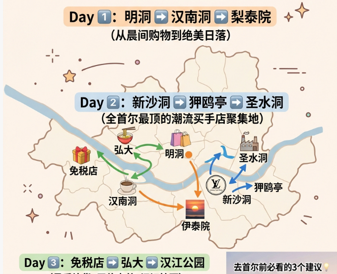 Day 1:明洞 → 汉南洞 → 梨泰院(晨间购物到绝美日落)