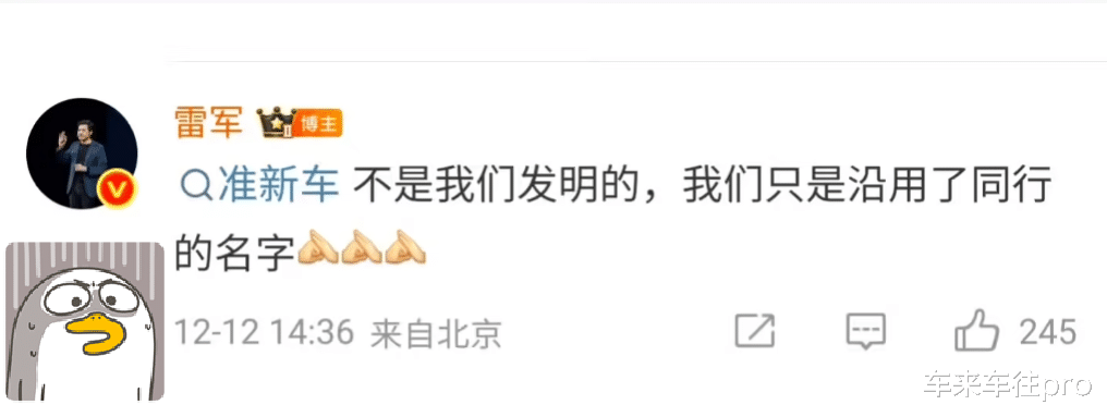 争议很快蔓延,而雷军本人也在评论区直接回应了一句话,反而让事情彻底“出圈”——“准新车不是我们发明的,我们只是沿用了同行的名字。”