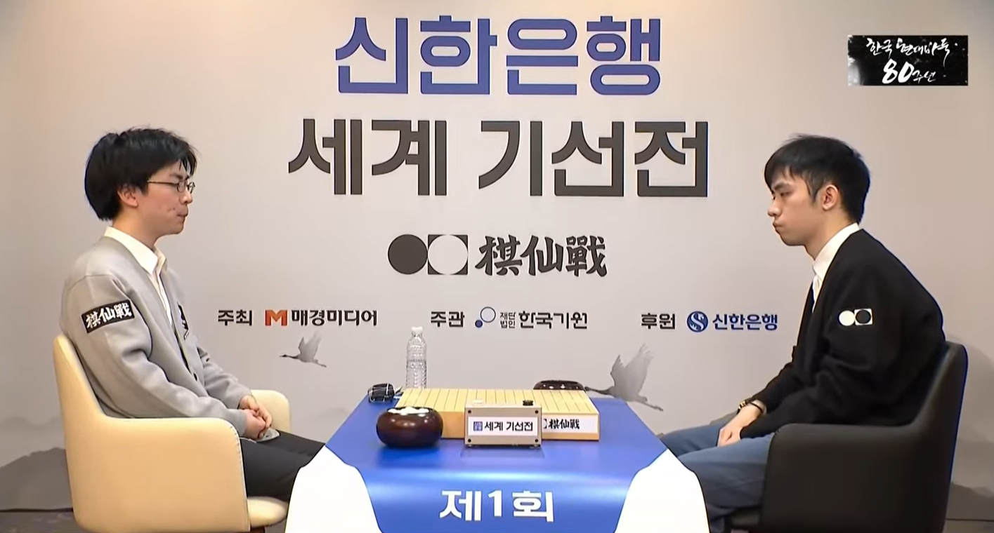 对局中,王星昊执黑先行,芝野虎丸手握白棋。序盘双方落子如飞,两位棋手在角落速速布局之后,便率先在棋盘右边展开了激战!尤其是右上的对抗中,白棋形成稳固的刀把格局,一时间对右上黑棋数子展开了包围,在局面上领先!