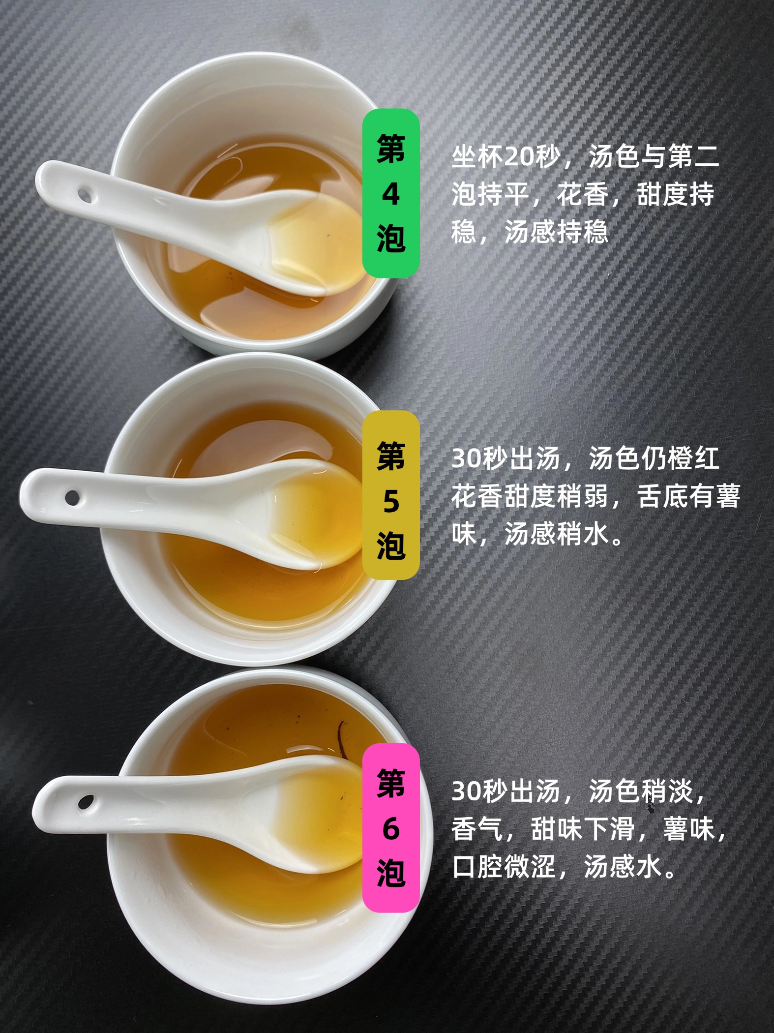 第三泡,汤色稍淡花果香持稳,口感干净,汤感稍弱