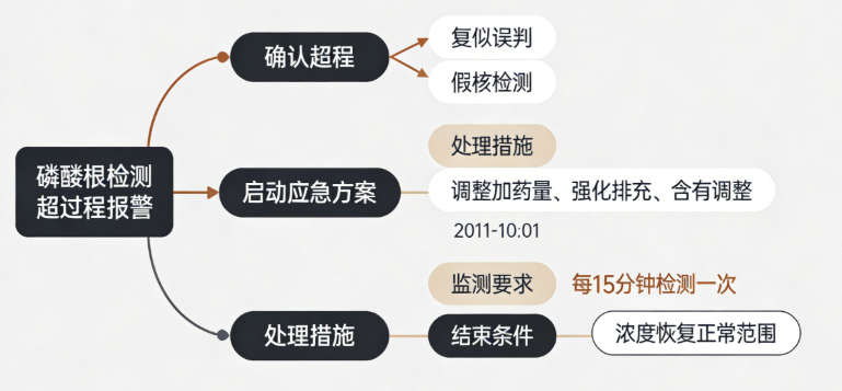 监测频率:应急处理期间,每 15 分钟检测 1 次磷酸根浓度,直至恢复至限值范围内;