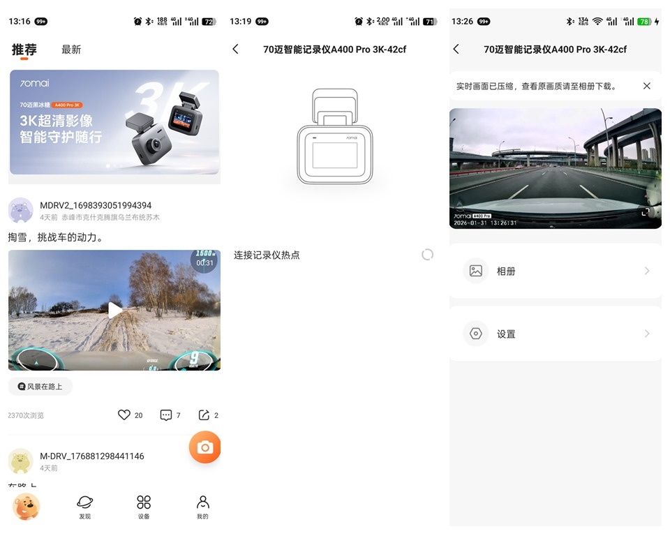 作为一名常年驾车上下班的老司机,我对行车记录仪的要求只有一个:别给我添麻烦,关键时刻能顶用。这些年前前后后也换过好几台行车记录仪了,踩过 “夜间看不清车牌”“停车监控亏电”“APP 连不上”“关键时刻画面缺失” 等各种坑,这次拿到70迈A400Pro 3K行车记录仪,用了差不多已经有月余,我觉得我终于找到一台能让我较为满意的行车记录仪。今天就从老司机的角度,跟大家聊聊这款70迈A400Pro 3K行车记录仪的使用体验。