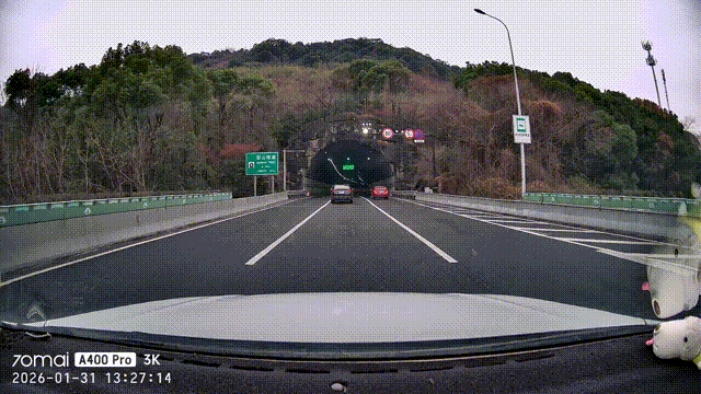 WDR 动态宽频技术在进出隧道时表现尤为出色,画面亮度变化平滑,不管是阳光晴好的天气还是阴天、亦或者是夜晚,近处隧道都没有出现过曝或突然变黑的情况,完全不用担心因为光线变化错过关键细节的录制。不管是白天还是夜晚,不管是进入隧道还是出隧道,视频都能在明-暗-明之间无缝过渡,录制效果非常好。