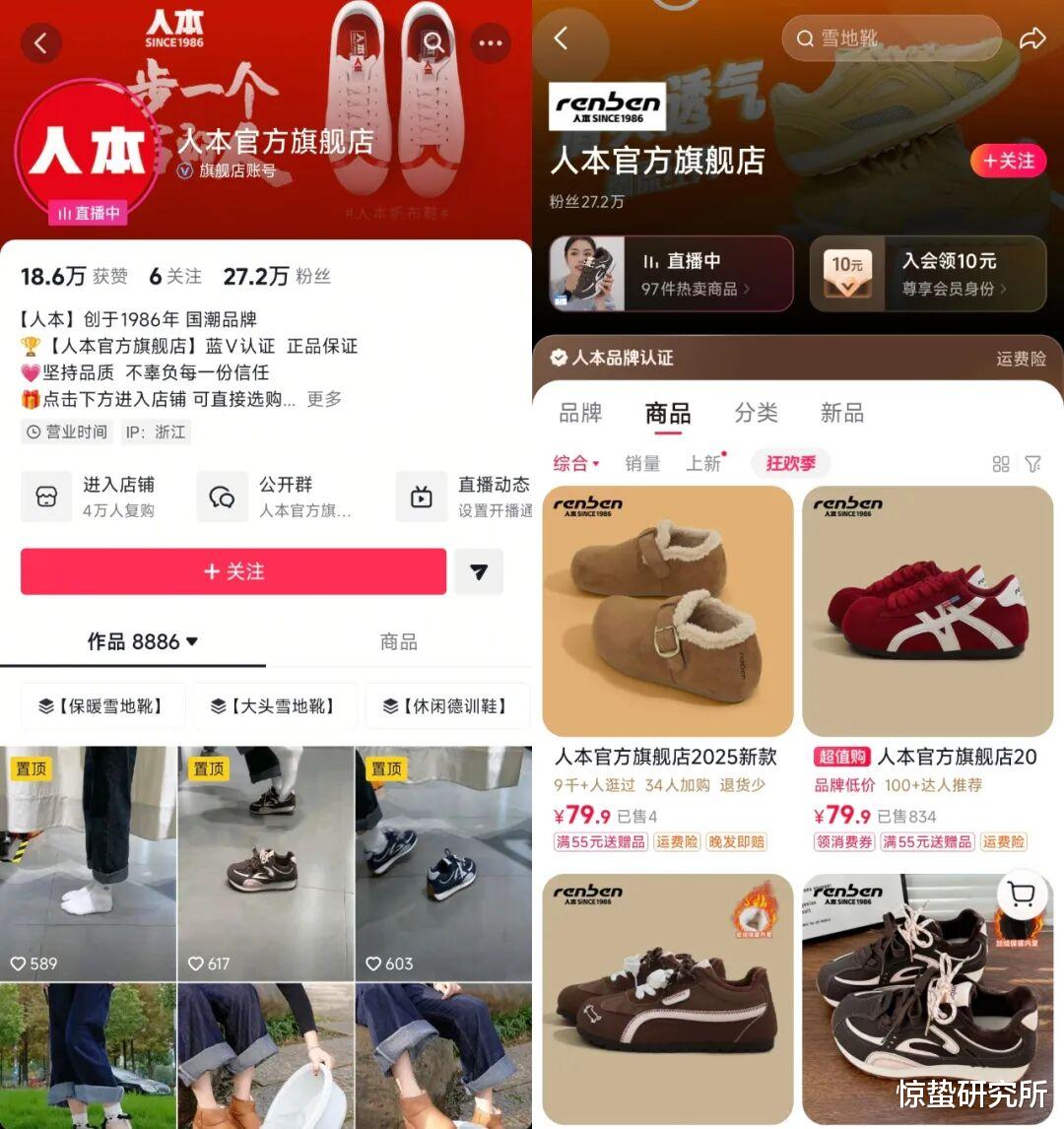 商达合作提效,为GMV增长注入新动能据惊蛰研究所了解,成立于1986年的浙江人本鞋业有限公司作为本土知名品牌,在2021年,抱着拓展直播电商增量市场的目的开始布局抖音电商,并且借助经销商体系迅速建立抖音账号矩阵。