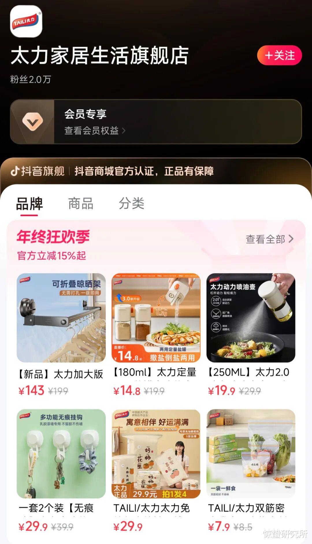 佣金减负,“投”出新增长2021年,专注于高性能新材料研发应用的制造业企业广东太力科技集团,因看好直播电商的发展前景,专门成立了负责抖音电商的运营部门,太力家居生活旗舰店便是其主要负责销售真空吸盘置物架、压缩袋等家居生活类产品的账号。