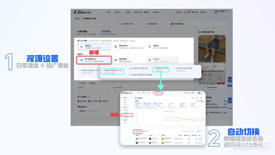 据惊蛰研究所了解,“双佣金功能”支持商家提前设置“日常佣金率”与“投广佣金率”两套佣金,系统能够自动识别全域推广投放状态并实时切换,非投广时段默认日常佣金率,投广期间则立即生效投广佣金率,节省沟通时间的同时,还能有效控制达人合作成本。