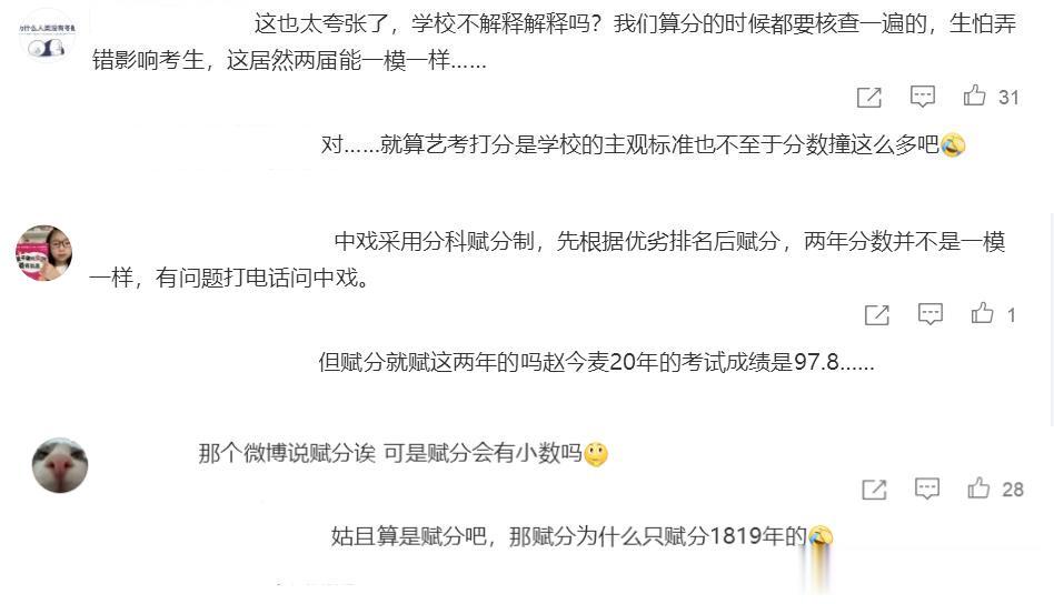 有人替中戏辩解称,人家可能用的是赋分制,展示的并不是真实的原始分。