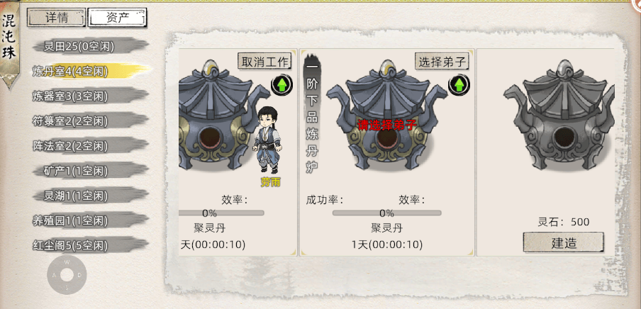 四、家族建设:实力根基核心建筑:炼丹房(灵脉山脚,丹药品质 + 30%)、炼器室(近矿脉)、藏经阁(功法存储)、剑阁(剑修培养)。