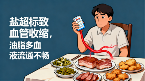 只靠吃药 “不管饮食”:觉得 “吃了降压药就万事大吉”,顿顿离不开咸菜、酱肉,盐摄入超标会让血管一直处于收缩状态,气血运行越来越慢;还总吃肥肉、油炸食品,血液里的油脂变多,像“掺了油的水”,流通不畅,慢慢就瘀堵在血管里。