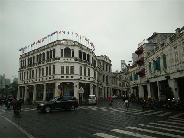 先说得胜沙路上的“五层楼”吧!这条路原来是海口所城的古城墙,这座军事保垒始建于明初1395年,比深圳大鹏所城还早3年,面积大一倍,有20多万平方米。1858年第二次鸦片战争期间,海口被迫开辟为通商口岸,这里紧邻海甸河,不远处就汇入海口的母亲河——南渡江,地理位置类似于上海黄浦江边的外滩。很快外商洋行汇聚,海关、医院、邮局、银行相继开张,老城急速膨胀。从1849年第一幢骑楼鹤立鸡群于简陋的瓦房茅舍中开始,西方文化中的优秀建筑遗产,被深具开放包容意识的沿海人民主动拥抱。