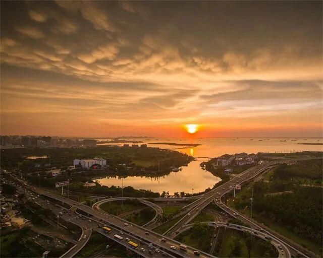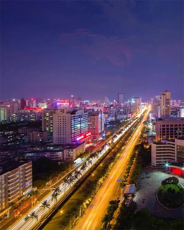 轮船渐渐靠岸,一排排璀璨的灯光浮在前方,那就是海口市。水晶宫般的高楼错落有致,沿着海岸线从东到西无尽地绵延,“如今直上银河去,同到牵牛织女家。”