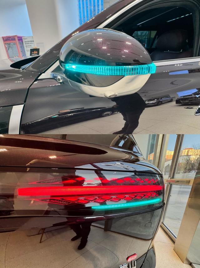 走近岚图泰山,第一眼就会被它那极具辨识度的前脸设计所震撼。宽大的进气格栅配合精致的镀铬装饰,营造出无与伦比的视觉冲击力。而最令人惊艳的莫过于HUAWEI XPIXEL智慧投影大灯,它不仅能在上车时投射专属欢迎光影,更能在夜间提供远超传统大灯的照明效果。当车主靠近车辆时,流光星辰把手会呈现出星轨般的动态光效,这种尊贵的迎宾仪式感,即便是百万级豪车也未必能够提供。