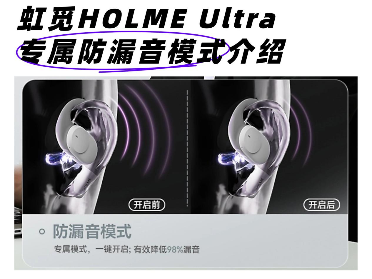 性能配置:针对开放式耳机普遍的漏音问题,虹觅Ultra采用了自研的防漏音模式,开启后能有效抑制声音外泄,保障私密性;而且采用了创新性的触片式充电,解决了传统触点式回仓不断联、充电慢等问题;还支持智能一拖二,可同时连接两台设备并轻松切换;单耳可以达到8小时续航,搭配充电仓能够持续32小时;内置四麦ENC通话降噪,即便处于嘈杂环境,仍可保持通话清晰;除此之外,虹觅的防水等级达到IPX6,即使运动中暴汗也不用担心。