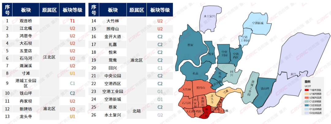 合并后的两江新区面积大、经济强,装下了从观音桥、江北嘴,到西边的蔡家、水土,东边的空港、龙兴等多达26个板块。