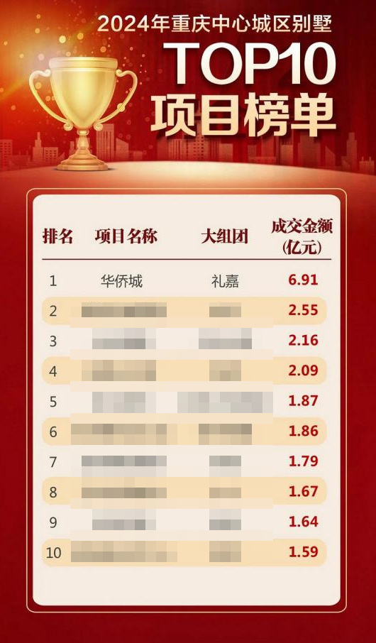 放眼重庆别墅市场,它也是妥妥的销量冠军,成交金额超过了榜单第二名和第三名的总和。