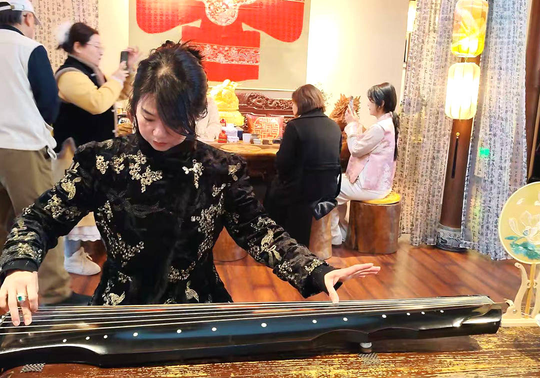 与此同时,抚琴探幽环节同步开展,悠扬古琴声缓缓流淌,与茶香交织共生,勾勒出一幅“茶韵伴琴音,雅趣满心间”的美好画卷,让大家在听觉与味觉的双重享受中,沉浸式感受国风文化的独特魅力。