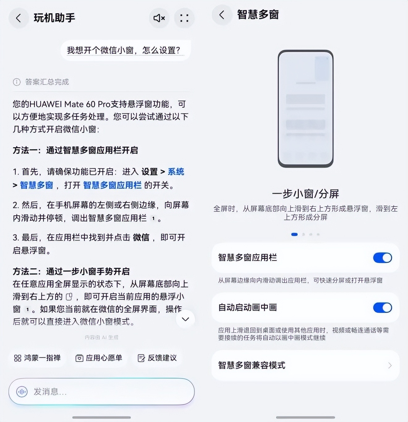 这种变化,在春节和长辈相处时尤其明显。不用再刻意切换成“普通话教学模式”,直接用家乡话问一句,手机里的智慧助手小艺就能听得懂、回得上。配合升级后的鸿蒙操作系统,在手机桌面右滑进入“负一屏”,就能看到“玩机助手”入口。关于手机操作的任何疑问,都能在这里得到非常详细的解答和指导。
