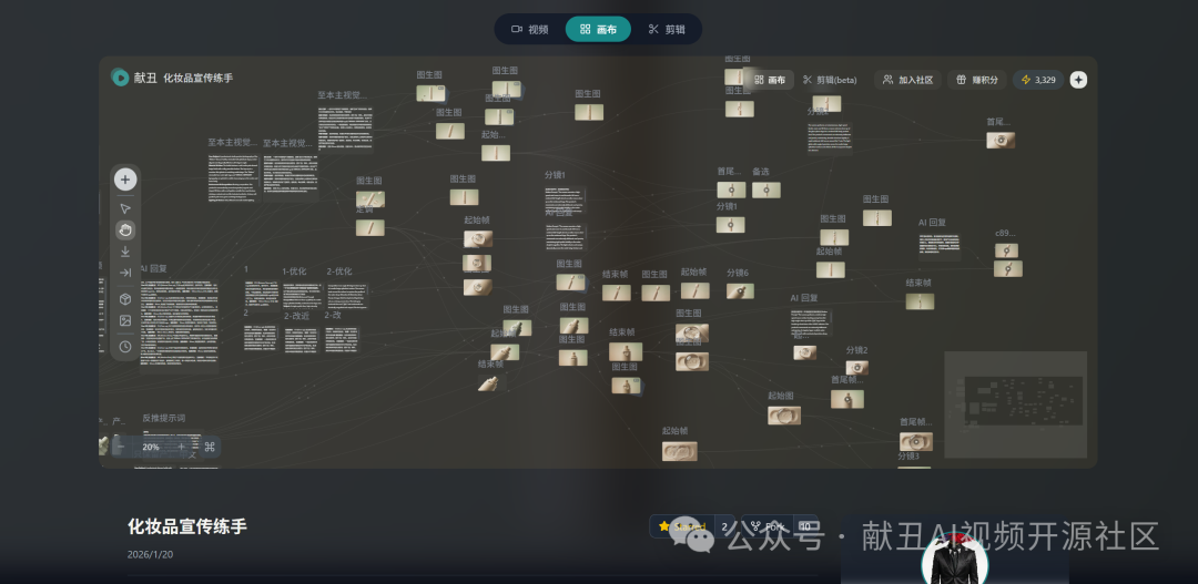 用的什么模型?提示词怎么“调教”的?参数为什么设这个数?过程中改了多少版?素材是怎么组装起来的?看完还能一键复制整个流程,丢进自己工作区,随手改改,就是你的新创作。