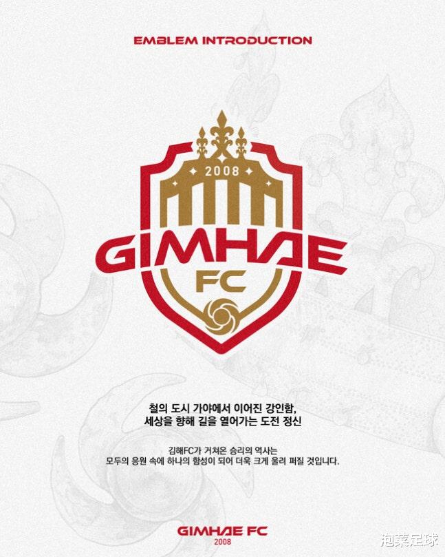 因此在新版队徽的设计上,球队将以往队徽主色调的黑红色,变为了象征对胜利的强烈激情与炽热斗志的红色和象征伽倻灿烂辉煌金色历史的金色。此外,新版队徽还融合了代表金官伽倻辉煌繁荣的“铁之火花”、象征在洛东江下游连接世界的“雄伟城门”、寓意永不停歇并更快更远延伸的“波形动机”,以及坚实的“承诺与信任之盾”,最终凝聚成一枚完整的队徽。金海队希望通过在力求在继承原队徽所蕴含的俱乐部历史与精神的同时,构建一个承载球队未来发展方向与愿景的象征体系。新赛季,当球员身披带着新队徽的战袍作战时,那不仅是为球队而战,更是为城市的荣光而战。