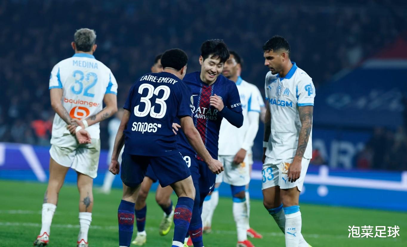除了吴贤揆和黄义助奉献了进攻点,昨晚在法甲舞台上演了一场巅峰对决,巴黎圣日耳曼主场迎战马赛的“国家德比”在巴黎王子公园球场展开争夺,但谁也没有想到,这场比赛居然成为了一边倒!巴黎在半场由登贝莱独中两元,下半场比赛第64~66分钟,巴黎通过乌龙球和“伤愈复出”的克瓦拉茨赫利亚进球,4-0领先对手。第68分钟,李刚仁替补登场,6分钟后他内切杀入禁区,利用个人脚下技术骗过对手后卫,左脚抽射近角完成破门,这也是他赛季各项赛事的第三粒进球,也是他伤愈后的首粒进球。最终巴黎主场5-0大胜对手,继续排名榜首。