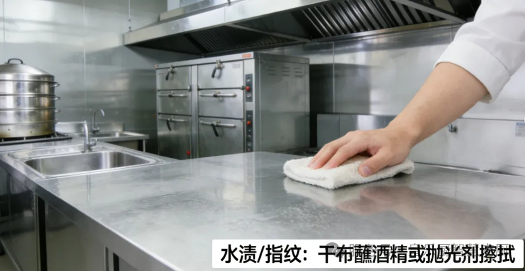 🔸 水渍/指纹:用干布蘸取少量酒精或不锈钢抛光剂轻轻擦拭,即可恢复光亮,日常也可在清洁后薄涂一层食用油(用软布蘸取少量擦拭均匀),减少指纹和水渍附着。