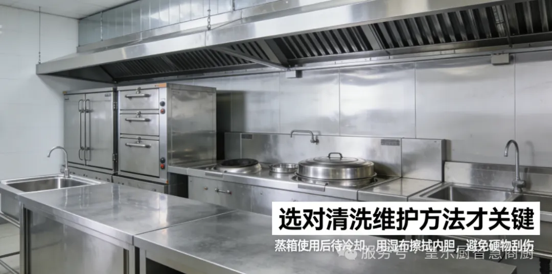 后厨的不锈钢设备干净又耐用?选对清洗维护方法才关键!😎 不管是操作台、蒸箱、水槽还是排烟罩,掌握这些技巧,既能保持设备光亮如新,又能避免细菌滋生,守护食材安全~ 赶紧收藏起来慢慢看!