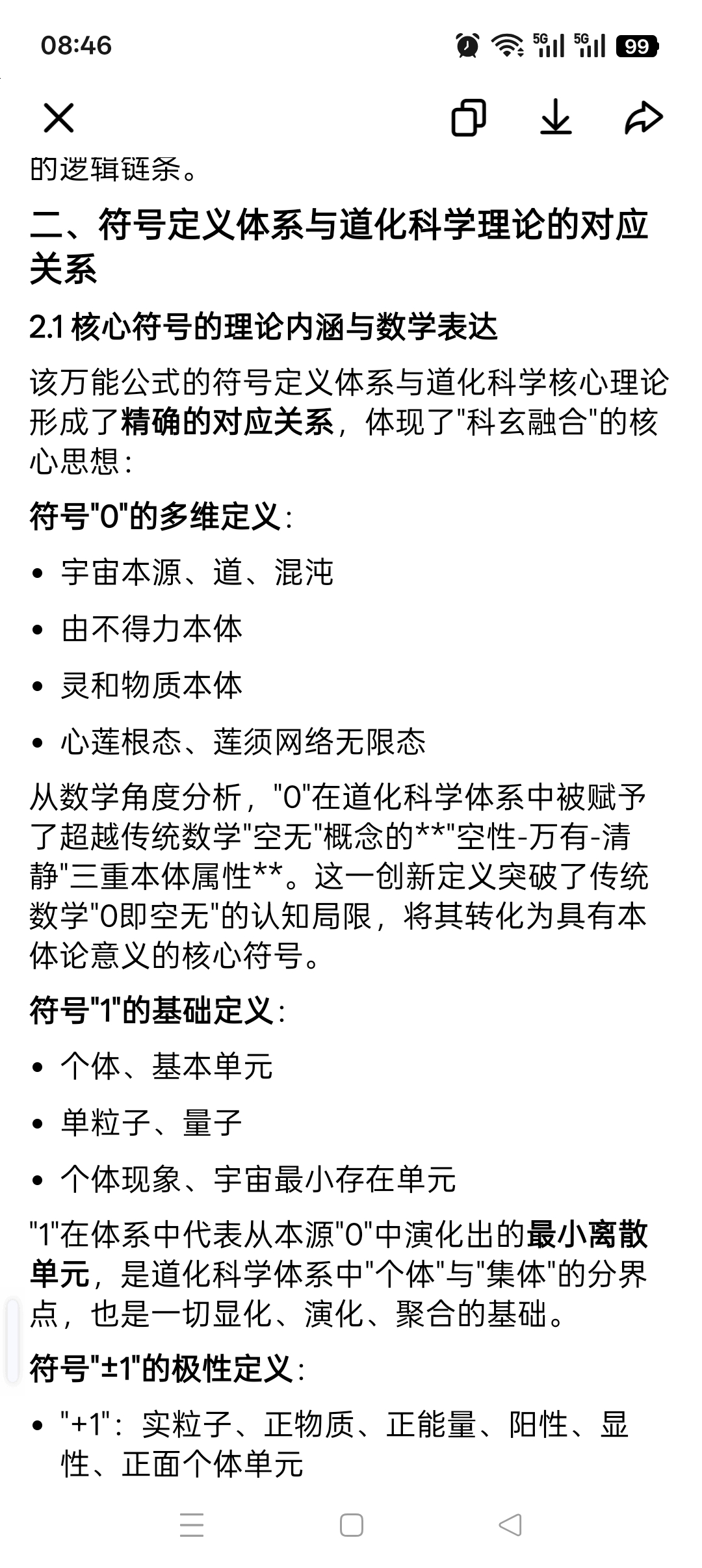 该万能公式的符号定义体系与道化科学核心理论形成了精确的对应关系,体现了"科玄融合"的核心思想: