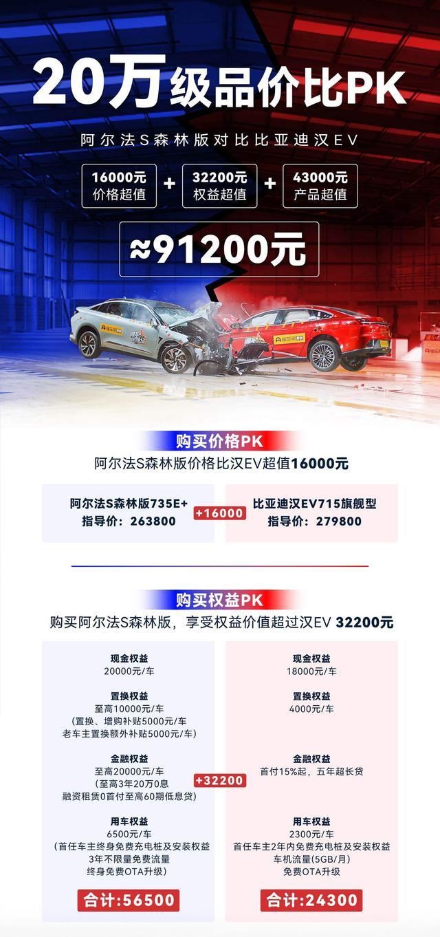 如今,消费者越来越懂车,对于纯电平台和车身安全意味着什么很清楚,而阿尔法S森林版相对于汉EV的这些优势,正好切中了消费者的爽点。