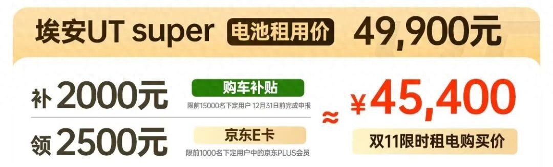 购车用户可享受多项权益。前15000名用户可享2000-4000元购车补贴,前1000名京东PLUS会员再赠2500元京东E卡。选择电池租用方案的用户,若在12月8日24点前下定,可享受电池月租金由499元/月限时降至终身399元/月的优惠。更有“180天价保”承诺,提车后半年内若官方降价,用户可获得10倍差额赔付。