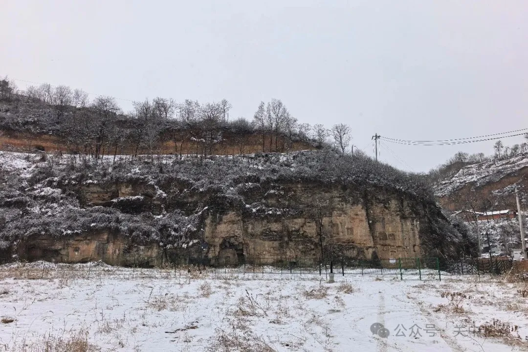 2026年2月15日下午,离开麟游县城的时候,顺着306省道经过城关村,我偶然看到路边汽车修理厂院内的麟溪桥石窟。在一整块平整的崖壁东端,明显可见大大小小的佛龛,前方被一道栏杆和一道铁丝网阻拦,无法近距离观看石窟。