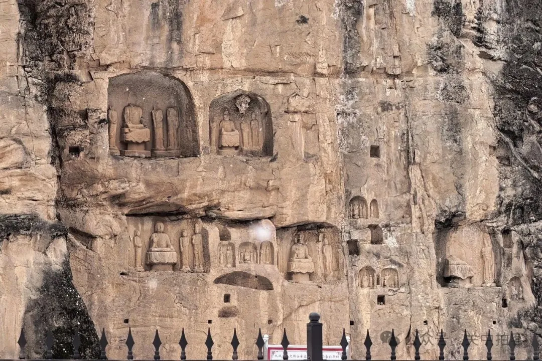 虽然距离比较远,但是依然可以看清龛内的造像,分为圆拱形龛、尖拱形龛和方形龛。其中,最大的龛高约2米,宽1.2米,深0.8米;最小的龛高0.3米,宽0.2米,深0.1米。