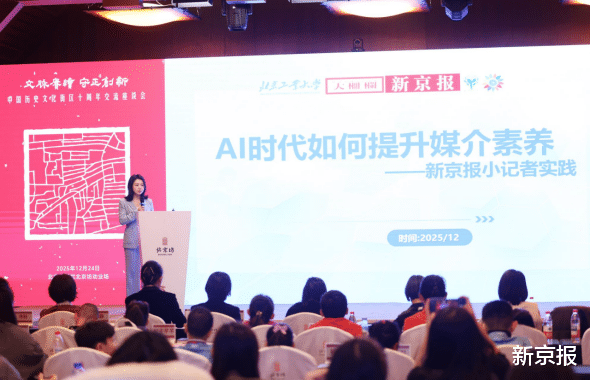 AI时代如何提升媒介素养?新京报教育新闻部主编金彧在现场进行分享。 新京报记者王贵彬 摄