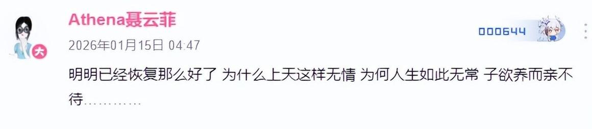 只可惜,那句“子欲养而亲不待”,终究还是成了无法弥补的遗憾。这位赢了天下无敌手的棋圣,在生活的棋盘上,终究没能抵过岁月的无情洗劫。