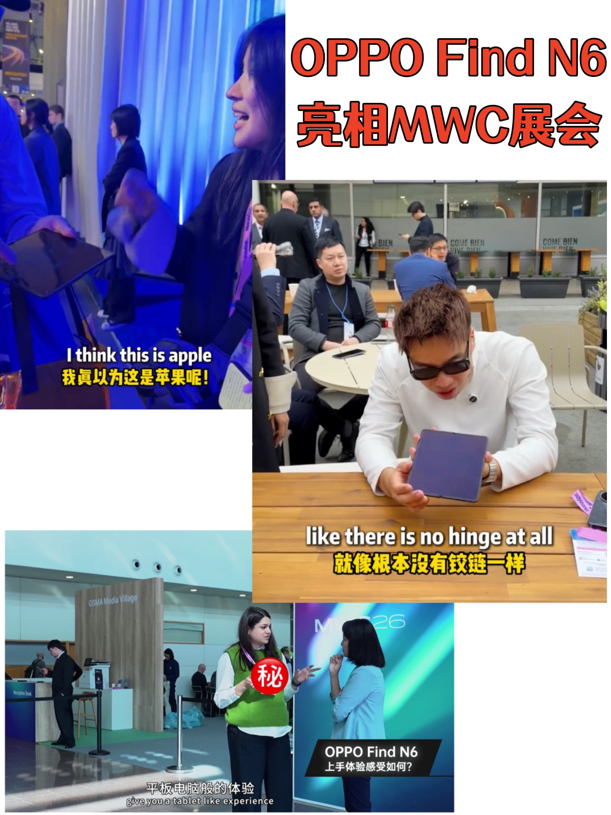 前几天才看到OPPO周意保拿Find N6随机给路人盲测,结果大部分人都摸不出折痕,直呼“平整度太牛了”~今天更是刷到有博主拿Find N6去到MWC 26现场给外媒体验,不少媒体上手都纷纷感慨“几乎看不见折痕,太夸张了”!