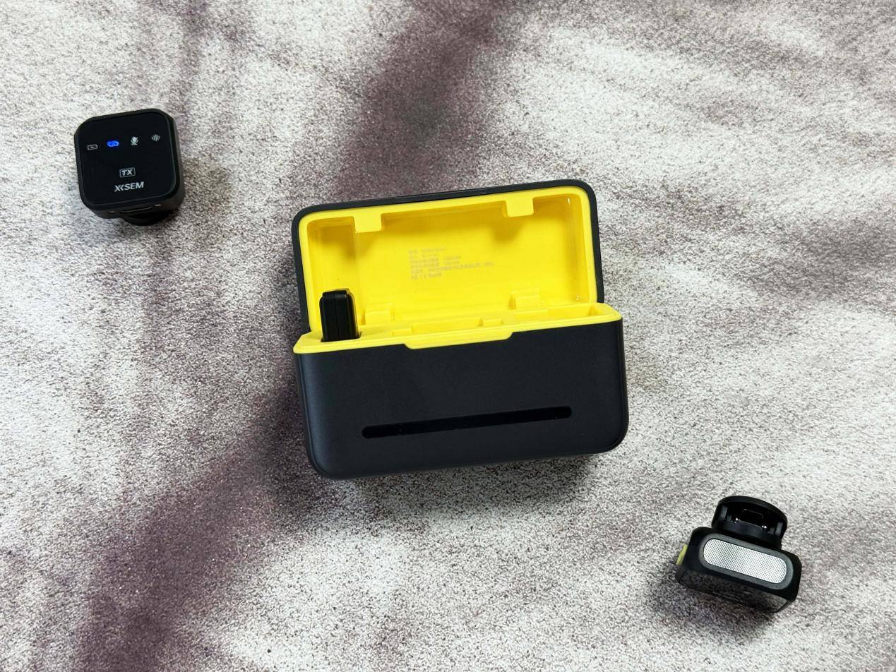 定位进阶迷你无线麦克风,采用两发一收含充电盒的配置,整体设计兼顾便携性与专业性。发射器小巧轻便,支持磁吸与夹持两种使用方式,其可拆卸旋转背夹能灵活调整角度以优化收音效果,佩戴时几乎无明显负重感。充电盒采用一体化收纳设计,发射器即便连同防风毛套或安装着磁铁、磁吸背夹也能直接收纳,盒盖内侧还专门设计了磁铁与带锁音频转接线的存放空间,携带取用十分便捷。