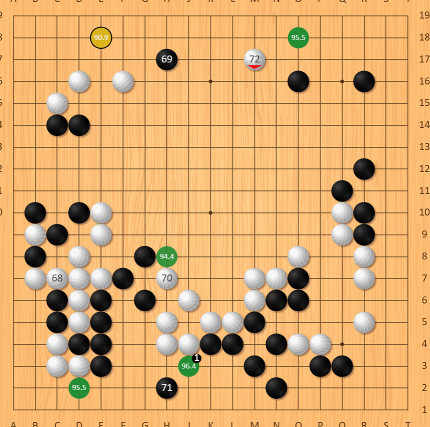 其中,党毅飞九段与韩LG杯世界冠军申旻埈九段的激战中。双方在常见的错小目布局中展开对抗,本以为会进入漫长的拉锯战,不过在中下实地的争夺中,申旻埈九段便持续出现缓手,导致黑棋的党毅飞九段右上实地和中下角落实地收获不菲,从而在局面上速速领先!短短百手,党毅飞的胜率便上升至9成,胜利在望!