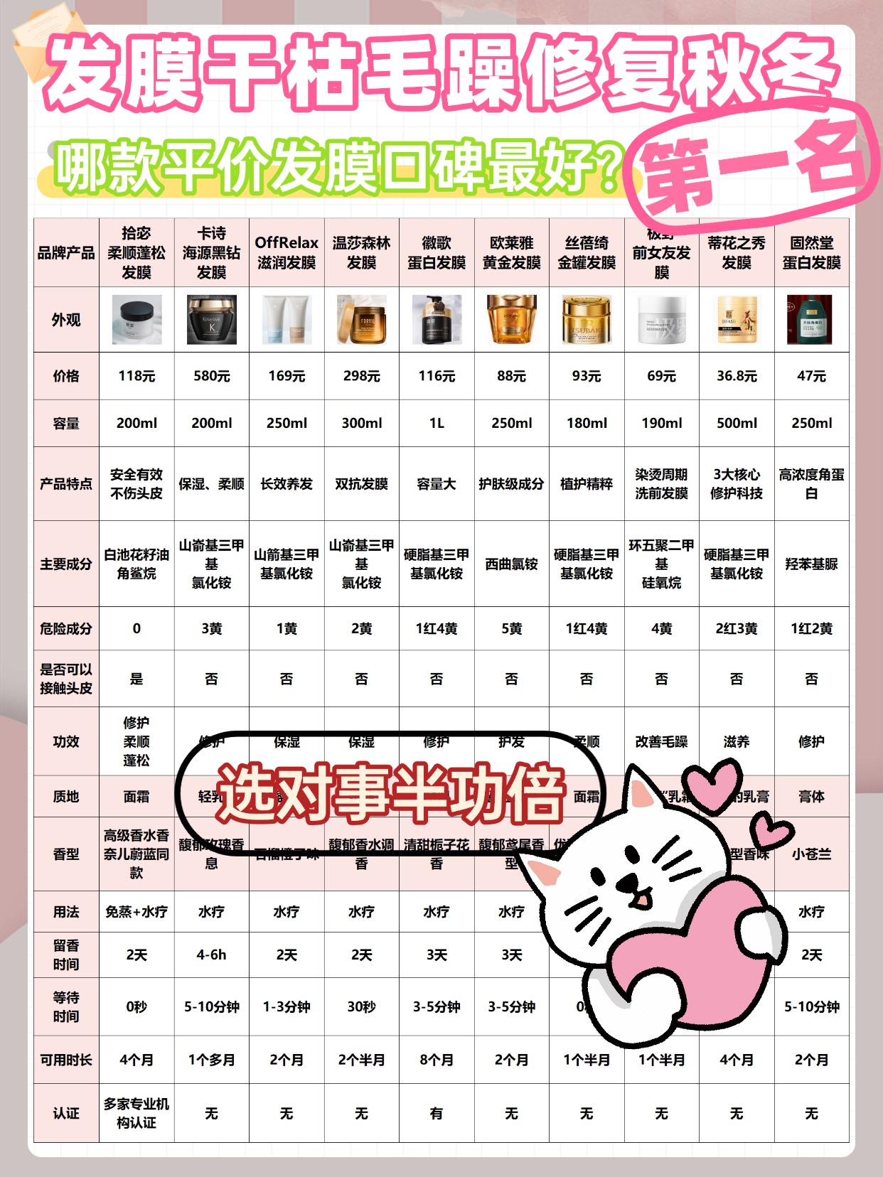 秋冬头发干到打结的朋友肯定问过发膜多久用一次还有头发分叉怎么解决,秋冬空气干燥,头发水分流失快,干枯毛躁还容易分叉,发膜的使用频率可以比春夏高一点,干枯分叉严重的话每周用 2-3 次就合适,发质稍好的每周 1 次也能维持,每次用的时候认真护理,给发丝补够营养,而头发分叉了其实没法彻底修复,只能靠日常护理预防和改善,除了定期用发膜,平时梳头发用宽齿梳,别用力拉扯,吹头发的时候温度别太高,尽量吹到八成干就停,还有别频繁烫染,减少对发丝的损伤,发膜的滋养能让分叉的头发变得顺滑,减少打结断发的情况,让头发看起来没那么毛躁,秋冬想做护发优等生,发膜的使用频率和日常的小细节都得注意。接下来分享自己选购发膜时的一些经验。
