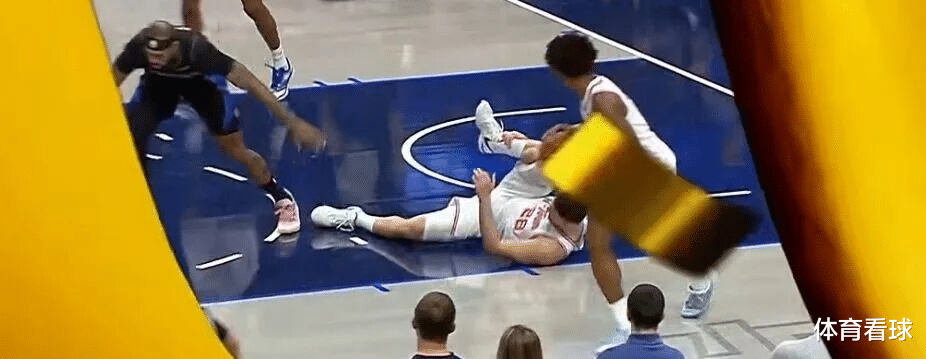 116公斤的体重,这一下可伤的不轻!随即退出比赛,返回更衣室检查,看受伤情况本场肯定是无法回归了。