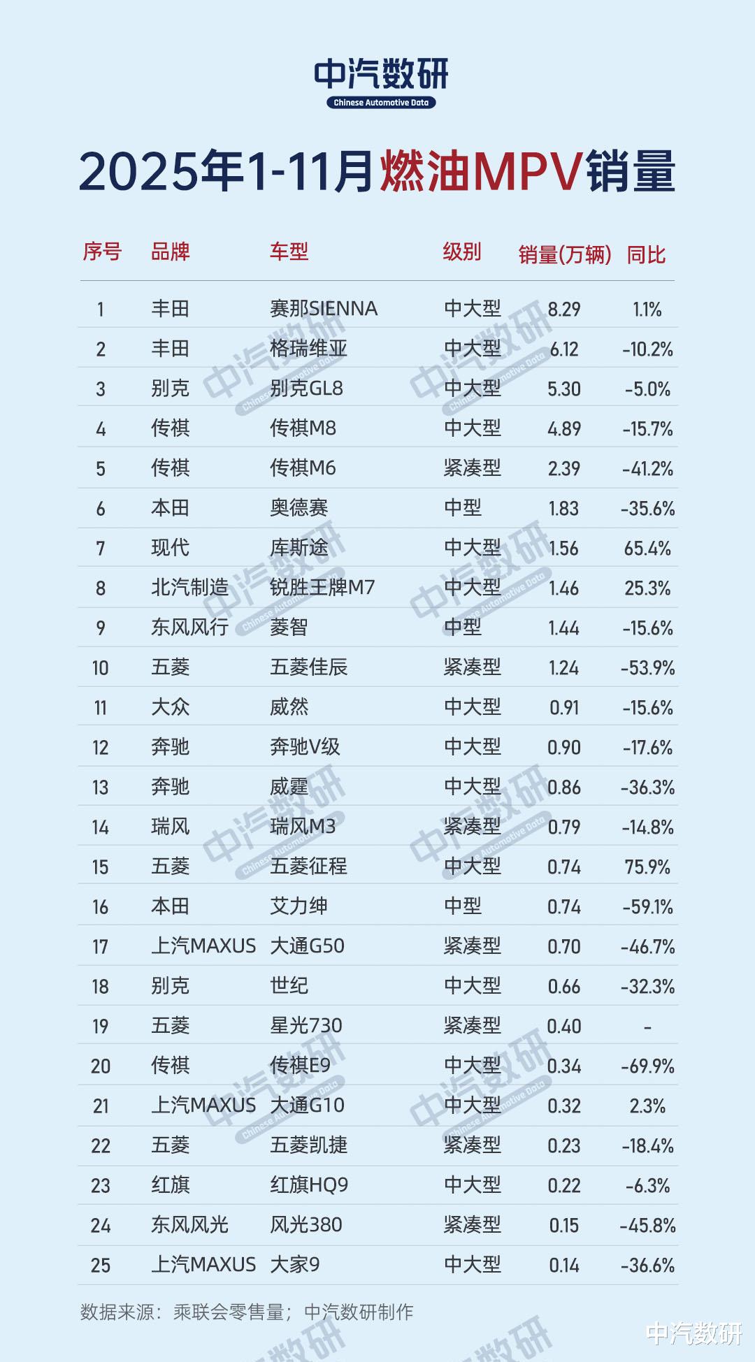 以下是各类燃油车市场1-11月累计销量排行榜: