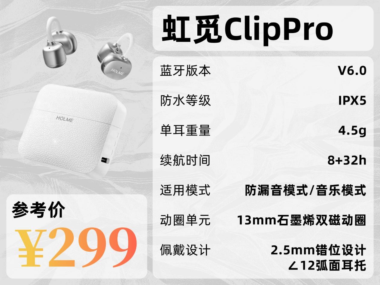 虹觅Clip Pro极为全能,性价比出众。不仅佩戴舒适,音质方面也出色;而且防漏音模式能抵消80%漏音。