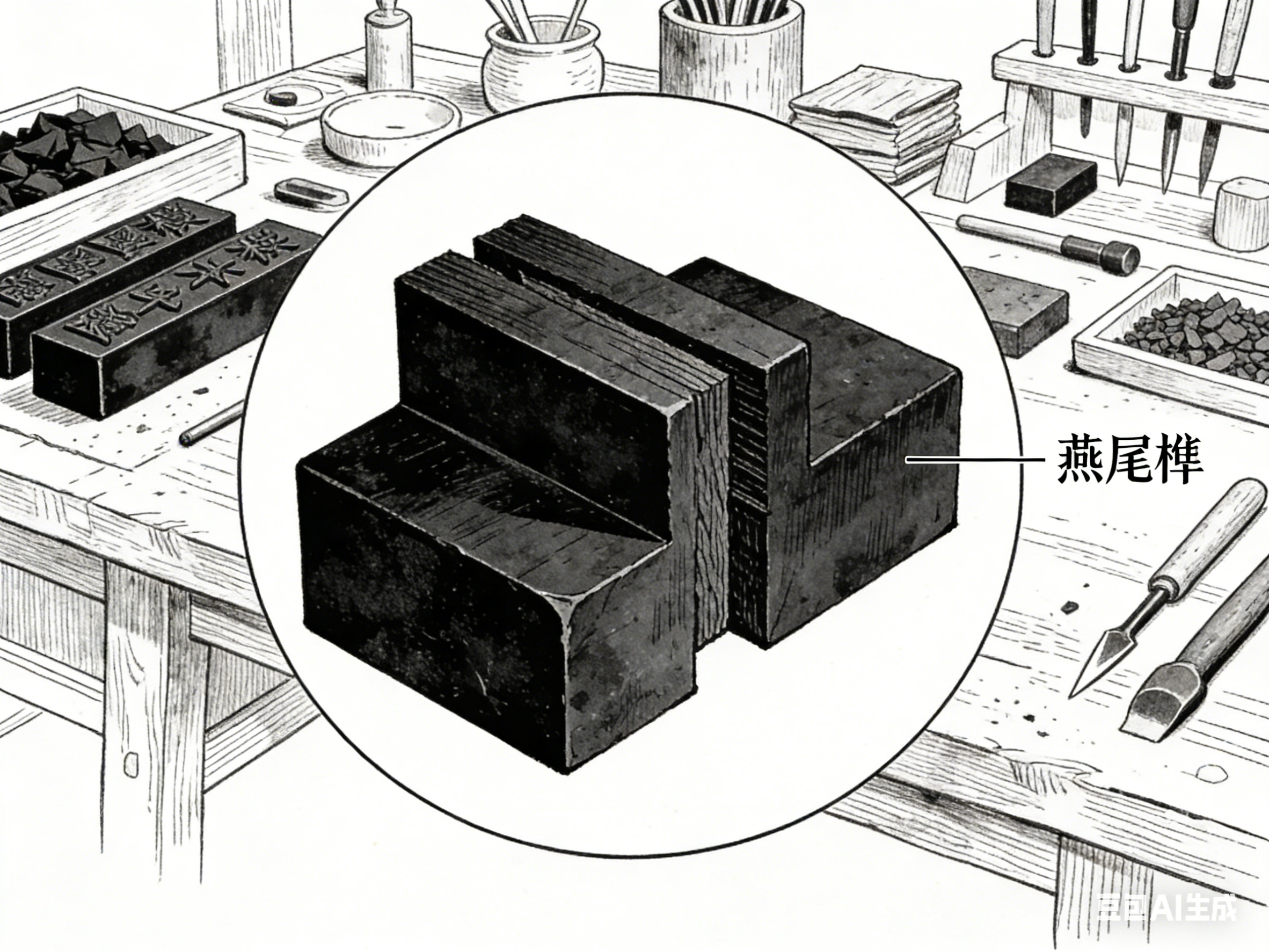 按榫头与榫眼的结合方式,可分为开口榫、闭口榫、贯通榫、不贯通榫等。开口榫加工便捷但强度较低,闭口榫接合紧密且外观整洁,不贯通榫可避免木材干缩湿胀带来的外观缺陷,多用于高端制品。按连接功能,可分为固定垂直构件的管脚榫、套顶榫,固定水平构件的大头榫、十字刻半榫,以及连接横竖构件的馒头榫、燕尾榫等。